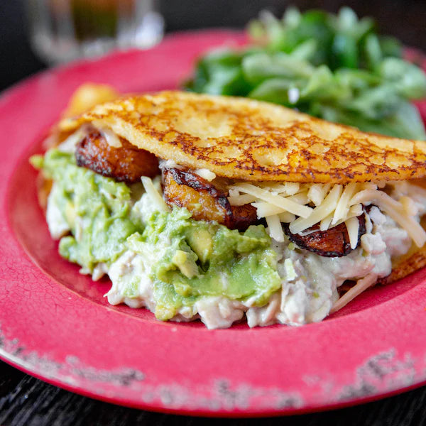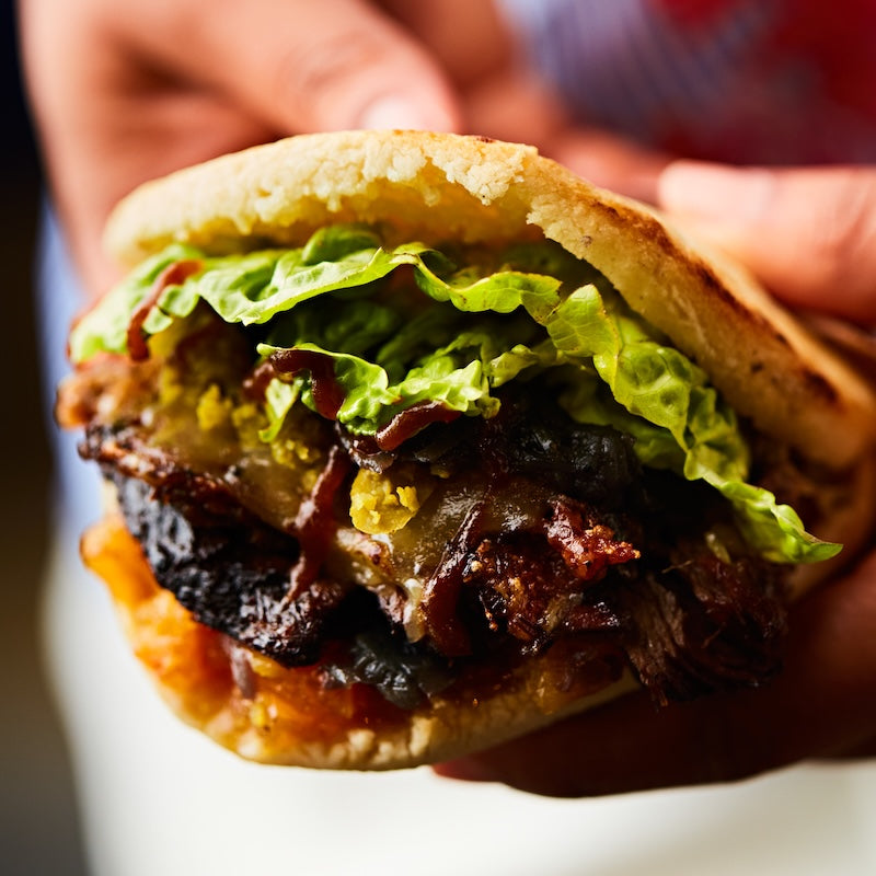 The traditional Venezuelan cornbread, round and flat and stuffed with delicious fillings.